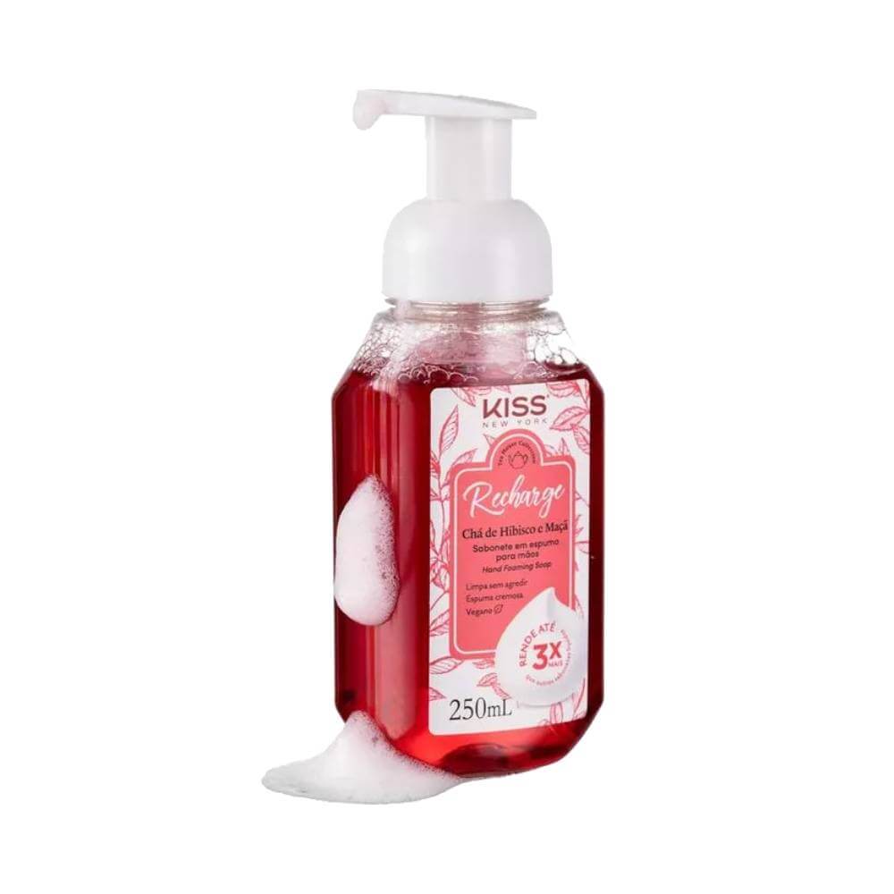 Delicadeza, cuidado e perfume em cada pump. O Sabonete em Espuma Hibisco e Maçã da Kiss New York transforma a rotina de higienização das mãos em um momento de autocuidado e suavidade, com uma espuma cremosa, fórmula vegana e uma fragrância envolvente.